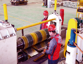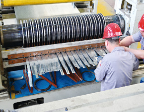 我司縱剪設(shè)備為國內(nèi)領(lǐng)先的的雙縱剪交換機(jī)組,加工精度高,速度快,效率高。且縱剪刀軸采用42CrMo鍛鋼,整體調(diào)質(zhì),表面淬火,精磨,電鍍工藝,高精度刀軸保證所切 板材寬度精確(0.05mm~0.12mm,視板厚), 毛刺細(xì)微( 0.03mm~板厚3%,視板厚度而定)。 |